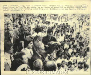 Italian Premier Christian Democrat Aldo Moro, center, in front of microphone, is surrounded by supporters in Florence Sunday during a rally for his party's campaign prior to general elections slated for June 20.
