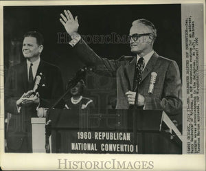 1960 Press Photo Barry Goldwater salutes and Morton applauds GOP Convention