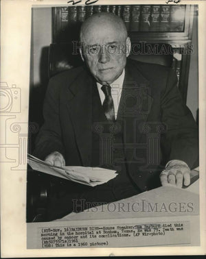 House Speaker Sam Rayburn died this morning in the hospital at Bonham, Texas. He was 79. Death was caused by cancer and its complications. This is a 1960 picture.