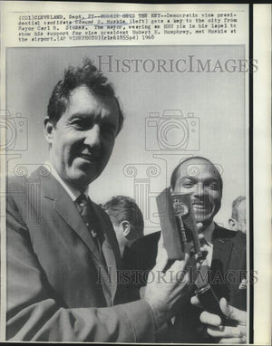 1968 Press Photo Edmund Muskie presented Cleveland city's key by Mayor Stokes