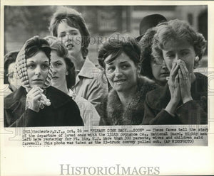 These faces tell the story of the departure of loved ones with the 134th Ordnance Company National Guard. Eighty men left here yesterday for Ft. Dix, New Jersey. More than 300 parents, wives and children said farewell. This photo was taken as the 23-truck convoy pulled out.