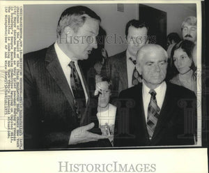 1975 Press Photo David Rockefeller and Abraham Beame at Capitol Hill briefing