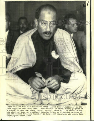 1970 Press Photo Egyptian President Anwar Sadat at Prayers at Egyptian Mosque