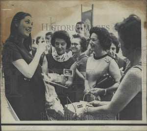 1968 Press Photo Lynda Bird Johnson jokes with campaign workers in Washington