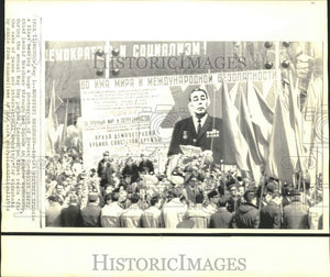 1974 Press Photo Soviet Communist Party Chief Brezhnev Poster on May Day Float