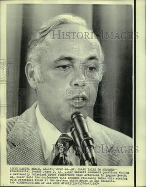 Laguna Beach, California - July 22 - St. Clair talks to newsmen - Presidential lawyer James D. St Clair answers newsmen's questions during a nationally televised press conference this afternoon in Laguna Beach. St. Clair held the conference with newsmen following talks this morning with President Nixon at the Western White House.