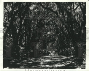 1973 Press Photo The Formal Gardens at Afton Villa framed by arched trees