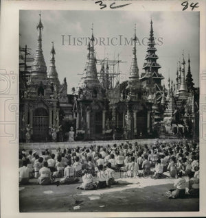 1961 Press Photo Women Praying at Shwedagon Pagoda in Rangoon, Burma - nox10572