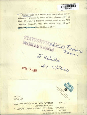 1978 Press Photo Michael Caine as British Secret Agent in "The Black Windmill"