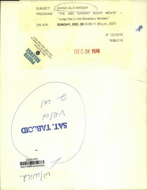 Khigh Alx Dhiegh, "The ABC Sunday Night Movie" - "Judge Dee in the Monastery Murders" Sunday, December 19 (9:00-11:00 p.m., EST).