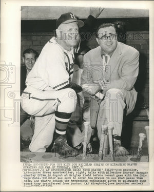 1954 Press Photo Sportswriter Joe Reichler talks with Charley Grimm - nox23166