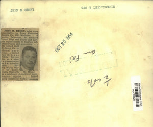 John M. Henry, sales representative for Long Electrical Supply Co., 1031 Magazine, A native Orleanian, he attended Jesuit High and Tulane and Loyola night courses in business administration and accounting. He joined Gulf Refining Co. in clerical positions, served New Orleans Public Service Inc. as a sales representative in residential sales. During World War II he joined Delta Shipyards as a purchaser of electrical maintenance supplies, joined Long Electrical Supply.
