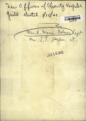 New officers of Charity Hospital Guild elected 1/15/41. Mrs. C. Warren Gilmer, left Mrs. J.T. Heyden, right.