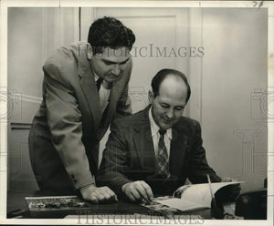Seated: Dr. William A. King (orthodontist), chairman of the speakers' bureau, Greater New Orleans Educational TV Foundation and, standing, Oliver Schulingkamp, a vice-chairman. Ken Eckert, the other vice-chairman, is not shown.