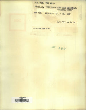 Subject: Ted Mack Program: "Ted Mack and the Original Amateur Hour" On air: Sundays, 9-10 PM, EDT