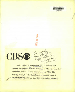 Tim Conway is surprised by old friend and former co-worker, Harvey Korman, as the now-bearded comedian makes a cameo appearance on "The Tim Conway Show," to be broadcast Saturday, November 8 (8:30-9:00 PM, PT) on the CBS Television Network.
