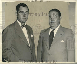 Installed as commander of Ernie Pyle Post 246, American Legion, was Fred J. McCormac (left). With him is A.H. Winstell, post adjutant. Others installed at the post's meeting at Lawrence's Restaurant include James W. Butler, first vice-commander; Frederick A. Roussel, second vice-commander; A.A. Hero, third vice-commander; Jack M. McCausland, finance officer; Clifford M. Deroode, sergeant-at-arms; the Reverend Joseph W. Buckley, chaplain; Samuel B. Caston, historian; Carl U. Parker and Sam Wilson Jr., color bearers, and Gordon B. Hyde, judge advocate.