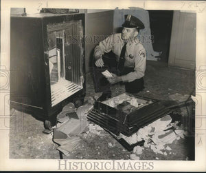 1955 Press Photo New Orleans Patrolman Joseph Madere Examines "Sledged" Safe