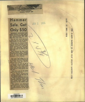Patrolman Joseph Madere . . . examines "sledged" safe Hammer safe, get only $50 Determined safecrackers used sledge hammers to beat open a safe at the Southern Blow Pipe and Manufacturing Company, Incorporated, 3601 Pine, early today. They got only about $50 from a petty cash box and an ancient Colt revolver for their labors. New Orleans