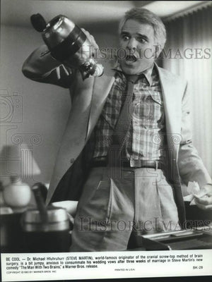 Be cool - Dr. Michael Hfuhruhurr (Steve Martin), world-famous originator of the cranial screw-top method of brain surgery, is a bit jumpy, anxious to consummate his wedding vows after three weeks of marriage in Steve Martin's new comedy "The Man with Two Brains," a Warner Brothers release.