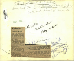 Mrs. C. I. Jones has been named Methodist woman of the year and Edgar E. Cayard Methodist man of the year by the Methodist district board of missions and church extension. Awards were made by Bishop Paul E. Martin. Mrs. Jones has been elected to the American division of the World Council of Methodists. She has served as a member of the general conference of the Methodist Church and as a member of the South Central Jurisdictional Conference.