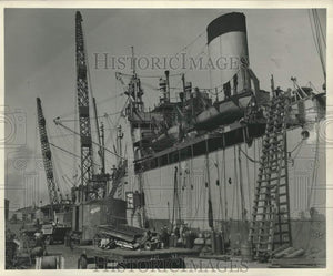 1946 Press Photo This cargo vessel is getting complete check-over at repair yard