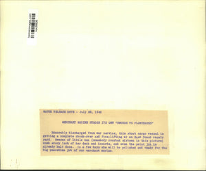 Honorably discharged from war service, this stout cargo vessel is getting a complete check-over and face-lifting at an East Coast repair yard. Swarms of little men (somebody counted sixteen in this picture) comb every inch of her deck and innards, and even the paint job is already half done. In a few days, she will be polished and ready for the big peacetime job of our merchant marine.