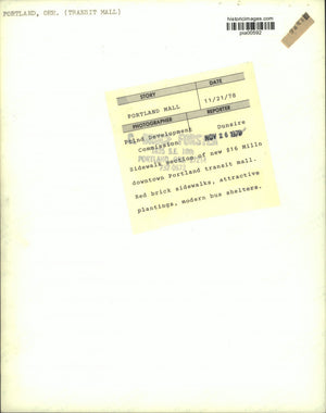 Portland, Oregon (Transit Mall). Sidewalk section of new $16 Million downtown Portland transit mall. Red brick sidewalks, attractive plantings, modern bus shelters.