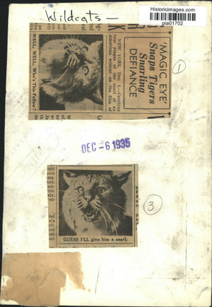 Wildcats. New York. Catching four stages of the snarl of an American wildcat on the film of... 'Magic Eye' snaps tigers snarling defiance.