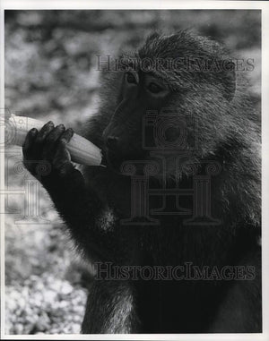 1978 Press Photo Olive baboon "Hackenbush" eats banana in Hampton Bays, New York