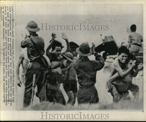 Vietnam War - Prisoners - Vietnamese. Quang, Tri, South Vietnam. Newly freed Viet Cong prisoners of war applaud and are applauded as they came ashore onto the Northern bank of the Thach Han River at Quang Tri, South Vietnam, Wednesday. Nearly 200 Viet Cong and North Viet prisoners of war were freed with more expected to be released Thursday.