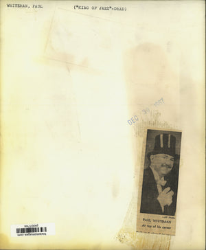 Whiteman, Paul ("King of Jazz" - Dead). Paul Whiteman, the famed bandleader who died this morning, was familiar to millions with his top hat and tails in 1932, Center, he is pictured in 1933 with his wife, Margaret, at completion of his publicized diet when he reduced from 327 to 185. At right, in 1943 he and comedian Gracie Allen got together at piano prior to a Hollywood ... concert.