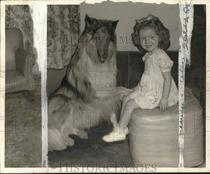 1946 Press Photo Blue Merle Collie dog & girl at home - pio25070