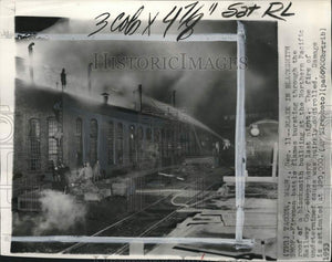 1953 Press Photo Firemen putting out fire at Northern Pacific Railway Co. in WA