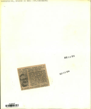 Rockefeller, Nelson (& Mrs.) (Vice President - Designate). Seal Harbor, Maine. Vice Presidential nominee Nelson A. Rockefeller with his wife "Happy" at his side during press conference Friday at his summer home in Seal Harbor, Maine. Rockefeller said Richard M. Nixon has suffered enough for Watergate and should not face criminal prosecution for the scandals that forced his resignation as president.
