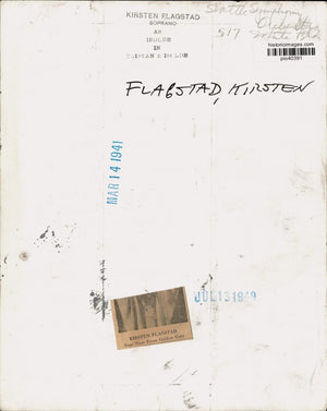 Flagstad, Kirsten. Kirsten Flagstad, Sour Note From Golden Gate. Kirsten Flagstad, Soprano, as Isolde in "Tristan & Isolde."