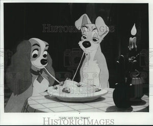 1987 Press Photo Main Cartoon Characters in "Lady & The Tramp" eating spaghetti