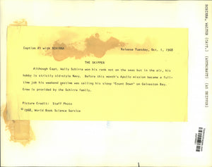 Capt. Walter Schirra (astronaut) (as skipper). Although Capt. Wally Schirra won his rank not on the seas but in the air, his hobby is strictly old-style Navy. Before this month's Apollo mission became a fulltime job his weekend pastime was sailing his sloop "Count Down" on Galveston Bay. Crew is provided by the Schirra family.