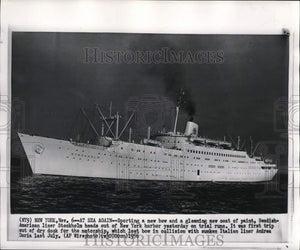 1956 Press Photo Swedish-American ship "Stockholm" on maiden trip off NY coast
