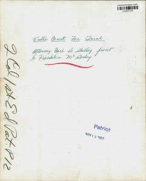 Enter court for trial - Attorney Carl B. Shelley, front; G. Franklin McSorley.