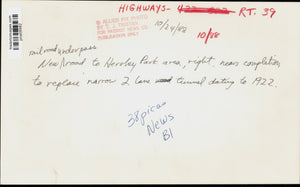 Highways - New railroad underpass road to Hershey Park area, right, nears completion to replace narrow 2 lane tunnel dating to 1922.