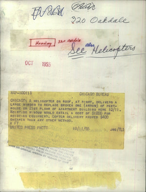 1955 Press Photo Helicopter Roof Right Window Apartment - RRU38771