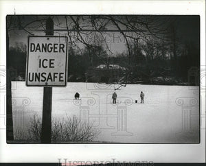 1980 Press Photo Nankin Lake Warning Sign Ice Fishermen - RRV02345