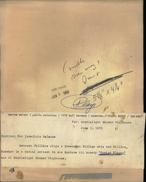 Rebeca Phillips plays a Greenwich Village Ohio and William Mucnow is a dental patient in Abe Burrows hit comedy "Cactus Flower",