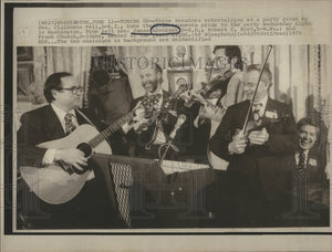 1975 Press Photo Senators Abourezk, Byrd, and Church Entertain at Party