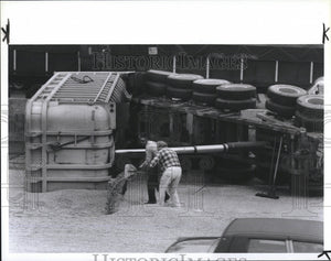 1988 Press Photo two men help overturned truck gravel traffic Interstate 75