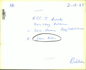 L. Sara Karam - Essay contest winner, R. Sam Riklin N.C.C.J. Awards Main Library Auditorium.