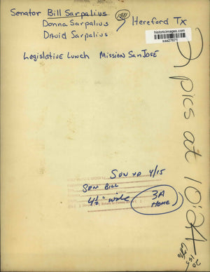 Legislative lunch -- Mission San Jose -- Senator Bill Sarpalius, Donna Sarpalius, David Sarpalius (Texas)