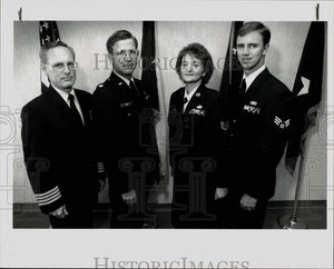 1992 Press Photo Officers wearing new and present uniforms at Brooks AFB, Texas