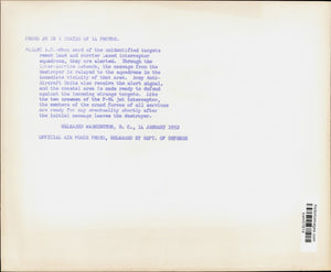 A.C. -- When word of the unidentified targets reach land and carrier based interceptor squadrons, they are alerted. Through the inter-service network, the message from the destroyer is relayed to the squadrons in the immediate vicinity of that area. Army Anti-aircraft Units also receive the alert signal, and the coastal area is made ready to defend against the incoming strange targets. Like the two crewmen of the F-94 jet interceptor, the members of the armed forces of all services are ready for any eventuality shortly after the initial message leaves the destroyer. (Photo released by Dept. of Defense)